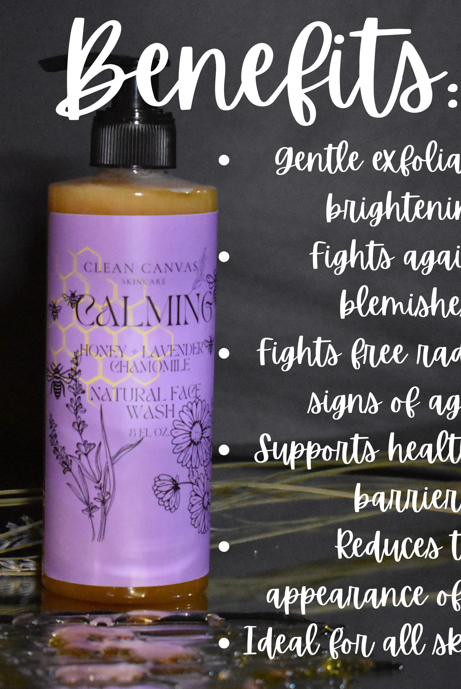 Indulge in the calming power of nature with this luxurious honey, lavender, and chamomile face wash. Formulated with honey—an ancient beauty secret—this cleanser can help gently exfoliate, brighten, and clarify the skin, revealing a smoother, more radiant complexion. Known for its potential acne-fighting properties, honey can help reduce the appearance of scars, even out skin tone, and support a healthy skin barrier while promoting elasticity.
