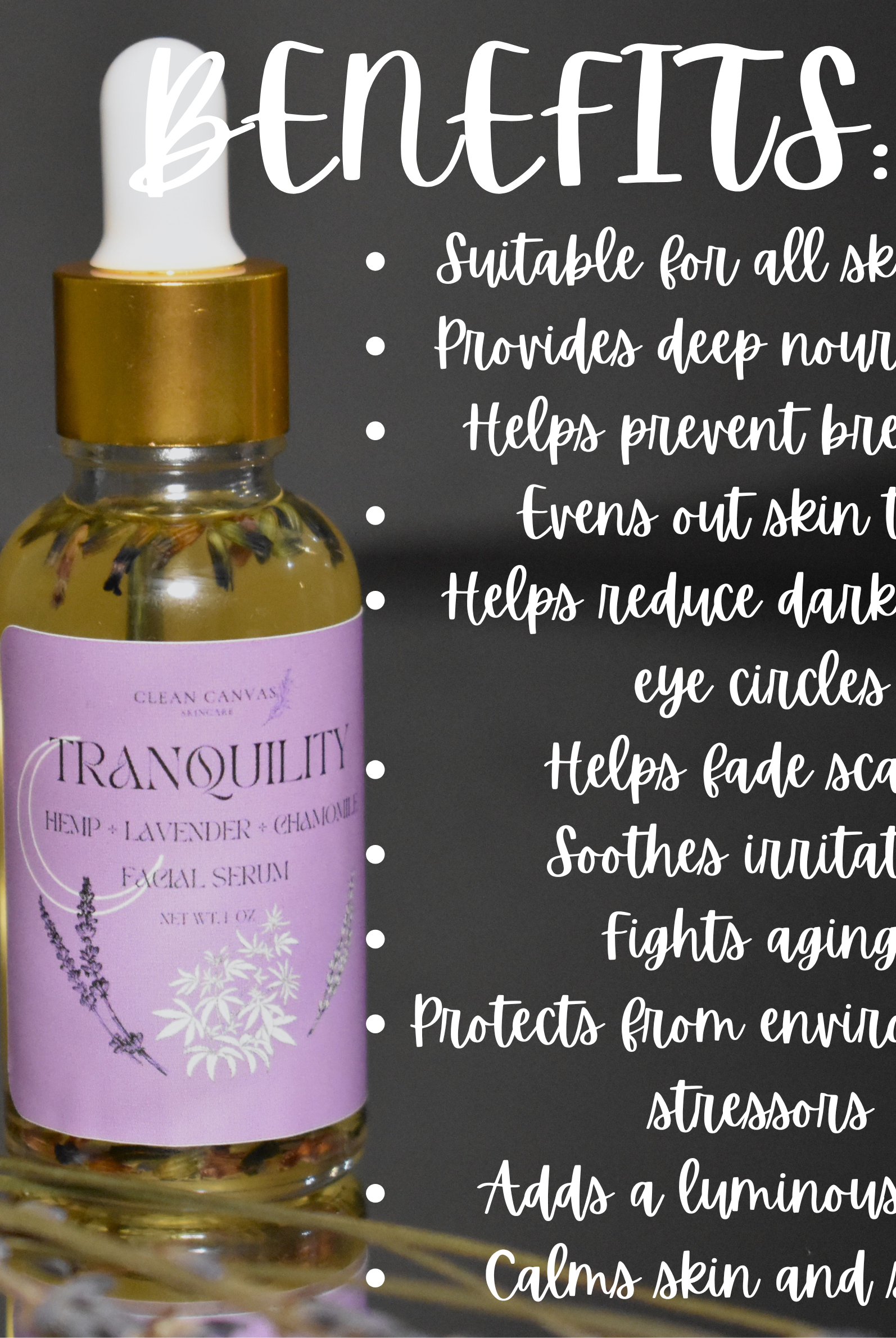 Infused with the calming essence of lavender leaves, our Tranquility Facial Serum brings you the ancient beauty secret cherished by the Romans, where lavender originated. Known for its rejuvenating properties, lavender helps regenerate skin cells faster, reducing the appearance of dark circles and fine lines. With its natural ability to soothe and balance, it works to prevent premature aging while leaving your skin feeling calm, refreshed, and radiant. Experience the serenity and glow that lavender has brought to beauty rituals for centuries.
